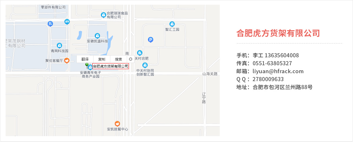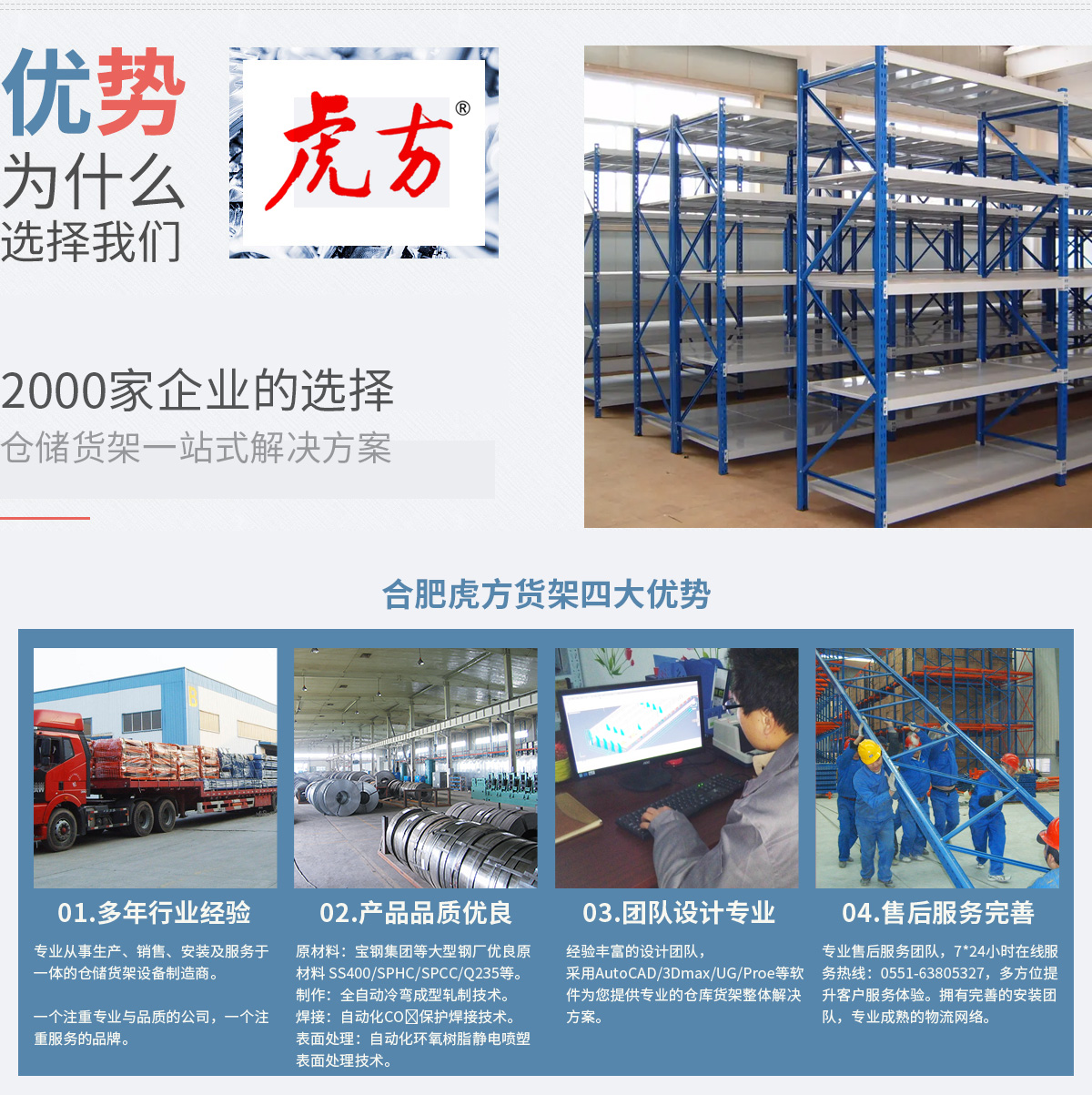- 合肥虎方貨架有限公司從事經(jīng)營倉儲貨架、物流周轉(zhuǎn)及搬運(yùn)設(shè)備、倉庫管理系統(tǒng)等相關(guān)產(chǎn)品的生產(chǎn)、銷售、設(shè)計(jì)、安裝及采購集成服務(wù)。 公司主要產(chǎn)品:貨位式貨架、倉儲重型貨架、擱板式貨架、閣樓式貨架、駛?cè)胧截浖?、鋼平臺貨架、穿梭式...